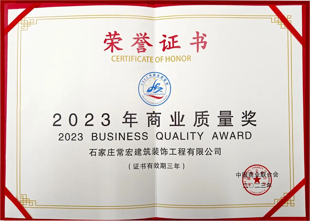 首頁> 關(guān)于我們> 公司新聞> 喜報(bào) | 常宏裝飾榮獲“2023年商業(yè)質(zhì)量獎(jiǎng)”